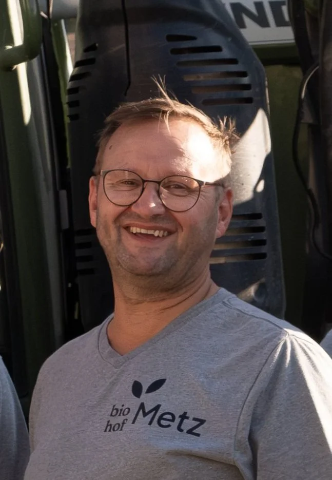 Roland Metz, der „AllesKönner“ (oder Allrounder) und „Mann für alle Fälle“ Landwirt mit viel Erfahrung und Ideenreichtum in allen Lagen. Nach der dreijährigen Ausbildung zum Landwirt absolvierte er anschließend eine betriebswirtschaftliche Ausbildung an der Höheren Landbauschule in Triesdorf. 2003 übernahm Roland den Betrieb von seinem Vater Richard Metz. Seitdem leitet er den Betrieb mit Fachkenntnis und Ideenreichtum.